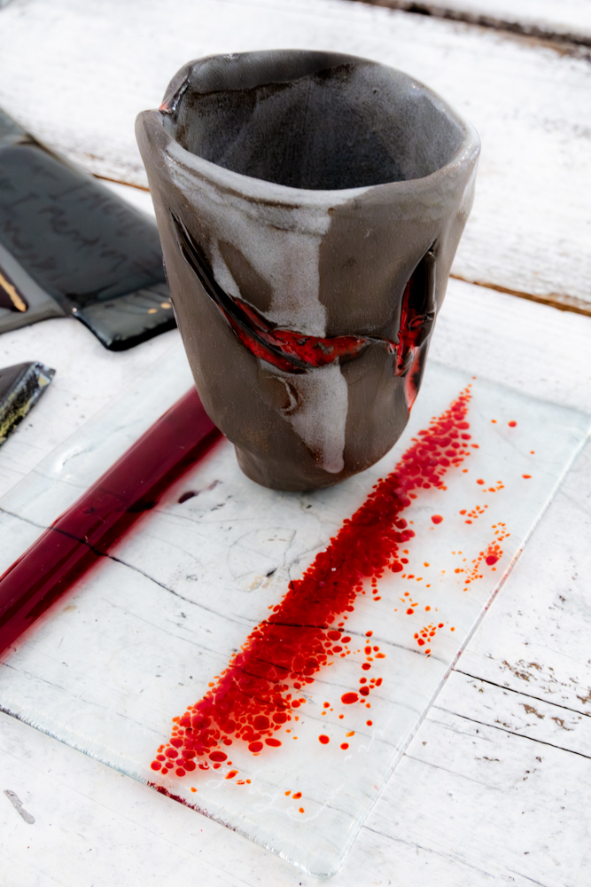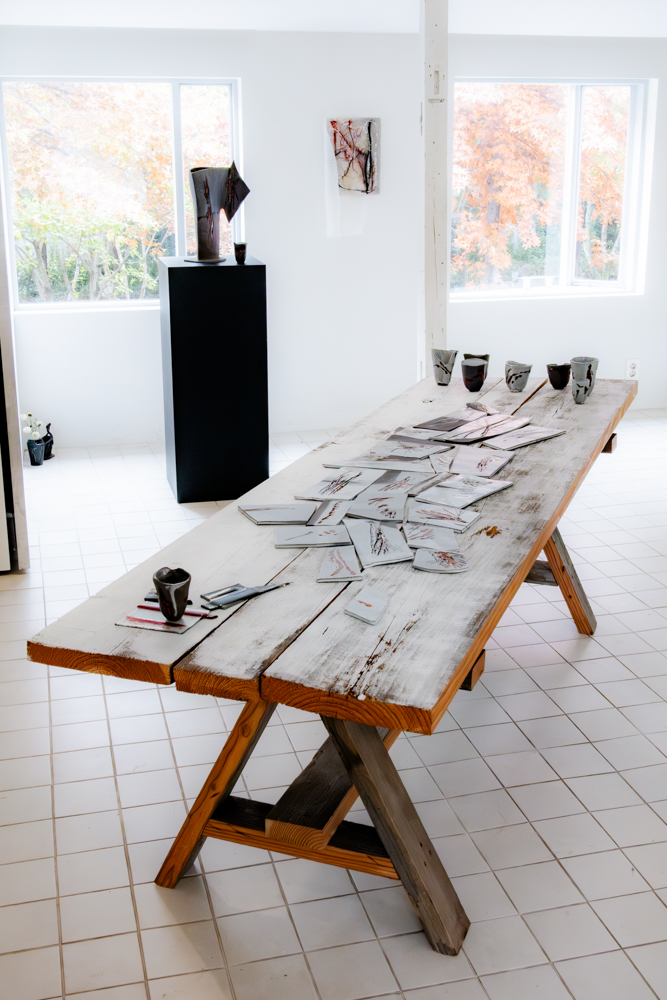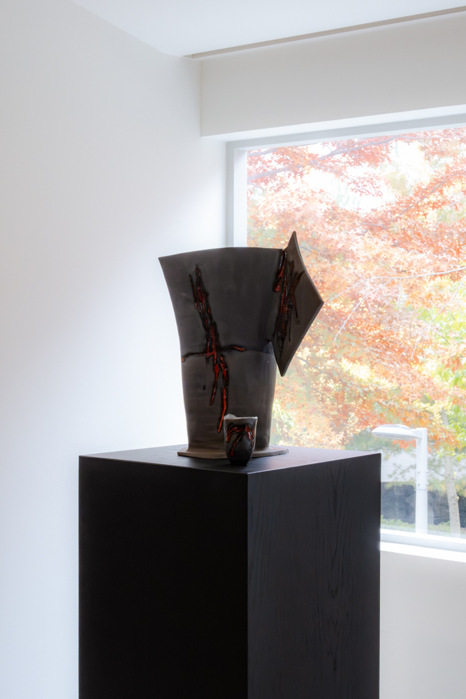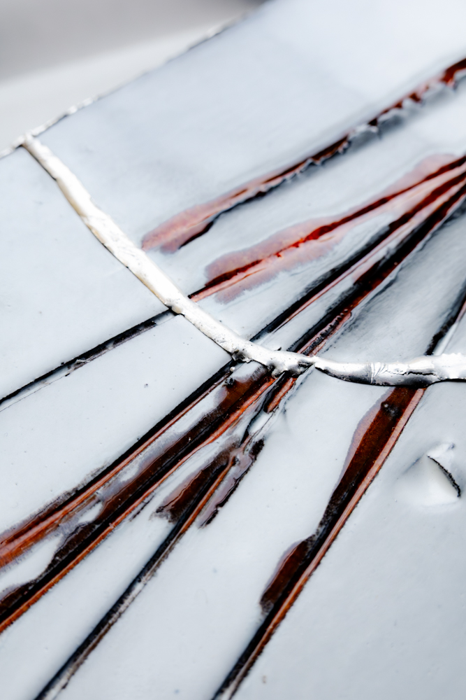 슬래시는 예측 불가능한 어느 지점에 폭발적이고 비정형적으로 터져나온다. 슬래시의 비정형성은 그것을 붙들어둔 도기의 표면에 자연물을 닮은 일그러짐을 가져온다. 김성혜가 붙들어 모습을 입힌 것은 그런 일그러진 타격이다. 그 꿈틀거리는 타격이 무채색의 재(ash)를 찢고 베어 열어 젖힌다. ‘ash’가 지닌 멸망이라는 의미는 극단적으로 생명이 소거된 재에게서 비롯된 것이다. 김성혜의 타격은 그런 아득한 멸망을 가르고 열어 젖힌다. 점토 덩어리를 밀대로 밀고, 스폰지로 다듬고, 칼로 그것을 가른다. 갈라진 부위를 벌려 주사기로 붉음을 주입한다. “Scar I Mention.” 나는 김성혜에게 그 붉음이 사람 몸의 붉음과는 선연히 다른 오렌지빛이라는 사실을 말한 적 있다. 김성혜에게서 돌아온 답은 살아 있는 누구도 다치게 하지 않으면서 타격을 기입하고 싶었다는 고백이었다. 그러니 그가 슬래시를 기입하는 곳/것은 잿빛이어야 한다. 재란 으레 거기 살아 있는 것이 없음을 드러내는 징표인 까닭이다. 허공을 가르는 전투의 춤들이 그렇듯 김성혜가 베고 가른 상처는 재라는 소멸의 징표에 자리한다. 재를 갈라 빛 같고 화염 같은 붉음을 찾아내는 것, 나는 그의 작업을 그렇게 읽는다.