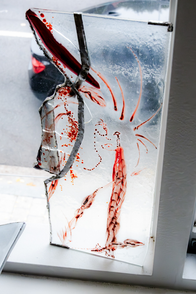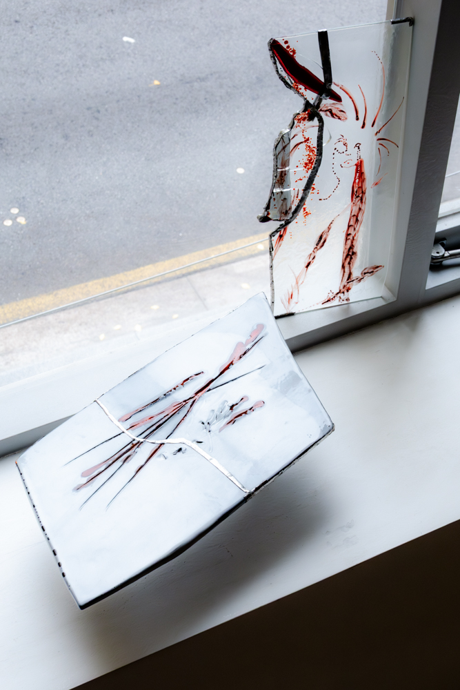 올 여름 나는 김성혜를 위해 시 몇 편을 번역했다. 에밀리 디킨슨의 시들이었다. 시들은 김성혜의 패브릭 작품과 한 편씩 매치되었다. 그 협업 프로젝트에서는 사용되지 않았지만 내가 번역한 시들 가운데 우리의 기억에 가장 깊숙이 남겨진 건 ‘A Slash of Blue’라는 첫 행을 가진 시였다. 에밀리 디킨슨의 시들에게는 제목이 따로 없다. 그래서 시의 첫 줄이 흔히 제목을 대신하곤 한다. 나는 ‘A Slash of Blue’라는 첫 줄을 ‘파랑 칼자국’으로 옮겼다. ‘푸른 선 하나’일 수도 있을 것이다. 이 짧은 시를 전부 암송할 수 있는 건 아니지만, 이후로도 ‘slash’라는 말 조각이 여름의 자국처럼 남아 맴돌았다. 나는 ‘slash’라는 말 조각이 김성혜라는 작가와 잘 어울린다고 느꼈다. 그 사실이 그에 대한 가장 중요한 단서처럼 느껴질 때도 있었다. 그러다 여름이 끝난 뒤 김성혜는 바뀐 계절과 함께, 찢고 터뜨리고 베어 가른 순간들을 가져왔다. 순간을 단단하게 만든 사물들을 내게 보여줬다. 덕분에 나는 바뀐 계절 속에서 다시금 ‘slash’라는 말 조각을 매만졌다.
