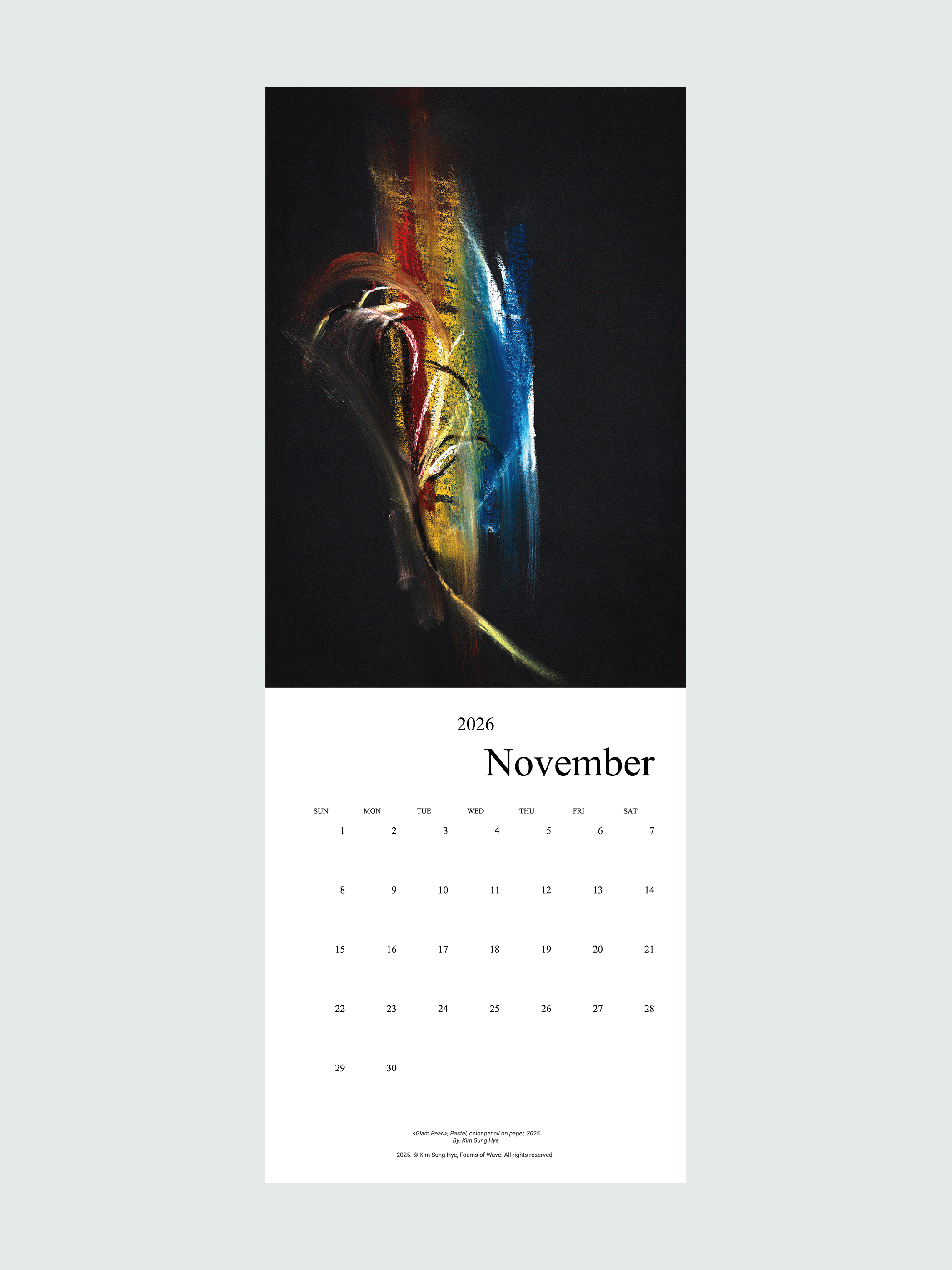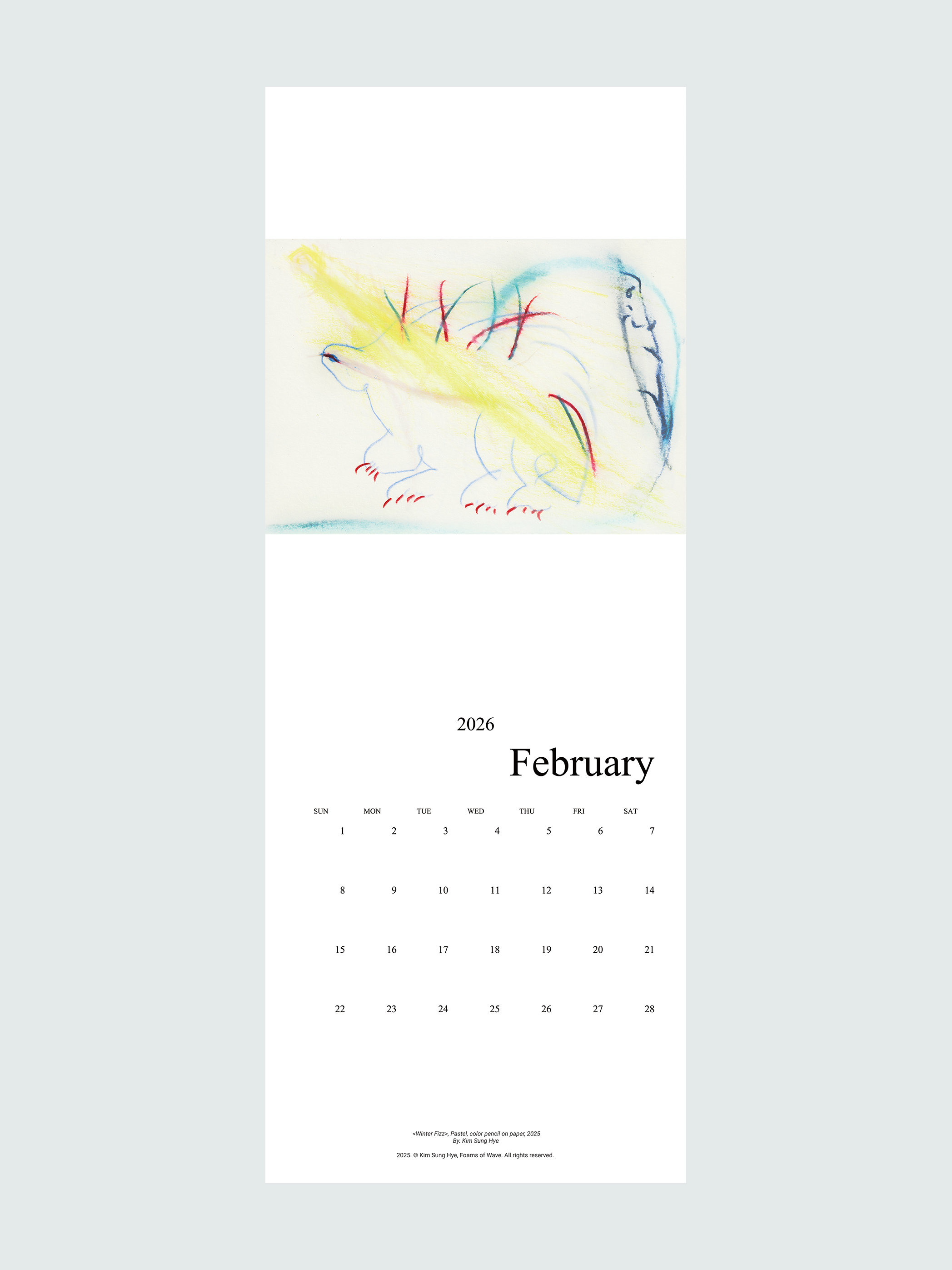 혹시 저런 재미를, 파워를 나의 그림으로도 전달할 수 있을까요? 이런 생각이 들어, 올 해는 파도의 거품들의 달력을 만들면 어떨까 하면서도 푸지게 게으름을 피우느라 12월 중순이 되어가네요. 2025년 동안의 드로잉들을 모아놓고서 이달엔, 이 계절엔 어떤 에너지가 좋을까 고민하며 매칭했습니다. 아직 저는 저 위대한 화가들처럼 위대한 무언가를 남기고서 사망하지는 않았기 때문에… 여러분의 시간을 휩쓸기보다는 동행하는 듯이라면 더 좋을 것 같네요.
